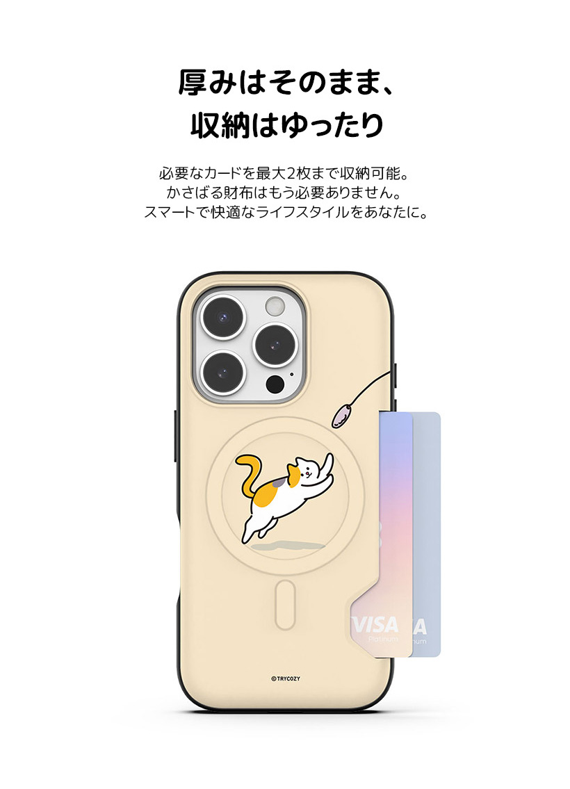 カードは2枚まで収納可能ですが、金属製カードは材質の特性上、収納・使用が難しい場合がございます。